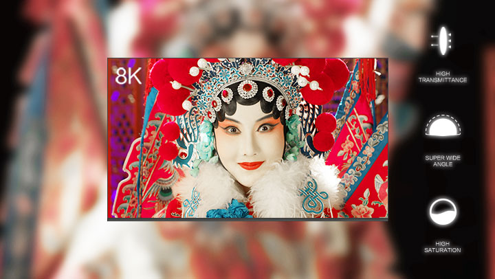 分辨率7680*4320,广视角、高透过率、色饱和度高,细节纤毫毕现,临场感无比震撼
